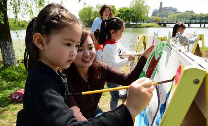 ▲ 4月10日,江蘇省鎮(zhèn)江市和平路街道金泉社區(qū)聯(lián)合金山水城幼兒園,開展“美麗春天畫中來”活動,志愿者帶著小朋友來到金山湖景區(qū)寫生,指導(dǎo)孩子們描畫春天的美麗景色,感受風景如畫的春色。(石玉成/攝)