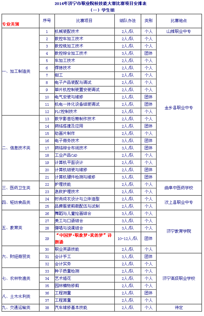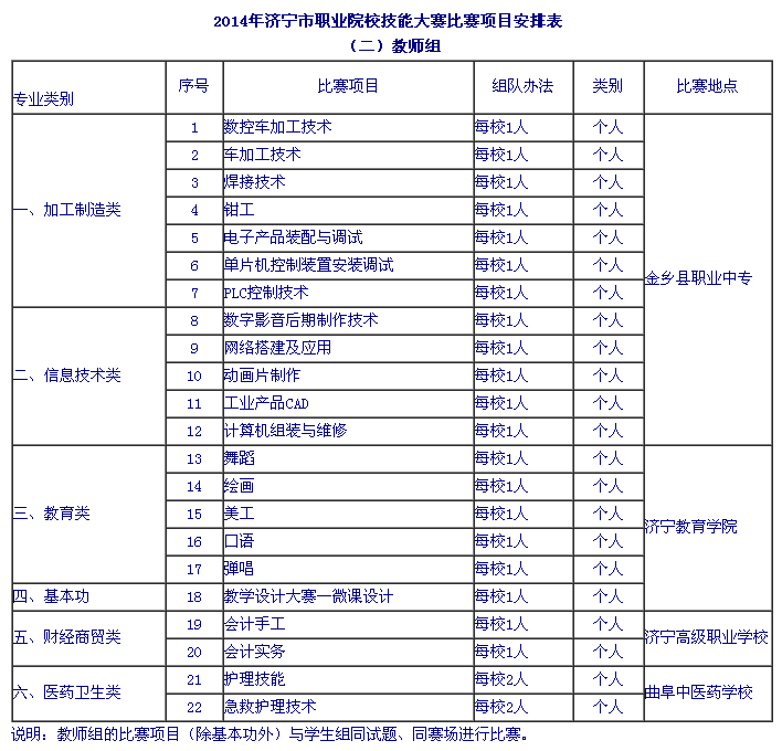 山東技校網(wǎng) >> 時事熱點 >> 濟(jì)寧市職業(yè)院校2014年技能大賽比賽項目安排表