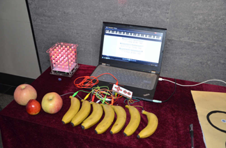 一陣悠揚(yáng)的音樂響起,這是一位愛好音樂的學(xué)生在水果鋼琴前演奏。常見的蘋果、香蕉通過(guò)幾條細(xì)細(xì)的電線和一個(gè)電路板連接到電腦上,竟能發(fā)出如此美妙的音樂。這次展出不僅有2013級(jí)呂宵陽(yáng)制作的水果鋼琴,還有2013級(jí)7班張匯參與研制的石墨架子鼓、2014級(jí)7班寇世俊主創(chuàng)的魔法城堡等,同學(xué)們對(duì)這些作品表現(xiàn)出濃厚的興趣。2015級(jí)的學(xué)弟們一邊看一邊嘟囔“明年我也就能做出來(lái),我應(yīng)該做的還好”。這是5月13日青島電子學(xué)校舉辦職業(yè)教育活動(dòng)周創(chuàng)新成果展中的場(chǎng)景。學(xué)校在5月9-13日“職業(yè)教育活動(dòng)周”之際,舉行了學(xué)校11個(gè)創(chuàng)客中心展出了部分創(chuàng)新成果。在活動(dòng)現(xiàn)場(chǎng),學(xué)生們精美的創(chuàng)客作品,憨態(tài)可掬的機(jī)器人表演,匪夷所思的樂器制作,吸引了眾多中小學(xué)教師駐足觀賞、體驗(yàn)。這次活動(dòng)受到了參加這次活動(dòng)的青島市中小學(xué)教師、校企合作單、及青島電子學(xué)校師生以及慕名而來(lái)的部分家長(zhǎng)一致好評(píng)。