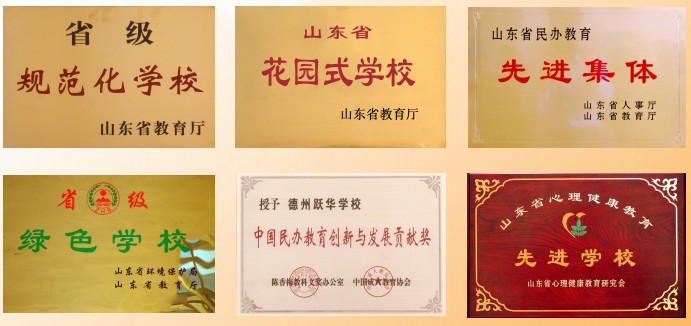 學(xué)校先后被評(píng)為“省級(jí)規(guī)范化學(xué)校”、“省級(jí)花園式單位”、“省級(jí)校本培訓(xùn)示范學(xué)!、“中國民辦教育創(chuàng)新與發(fā)展貢獻(xiàn)獎(jiǎng)”、“山東省校務(wù)公開優(yōu)秀星級(jí)單位”、“山東省民辦教育三十家品牌學(xué)校”等。