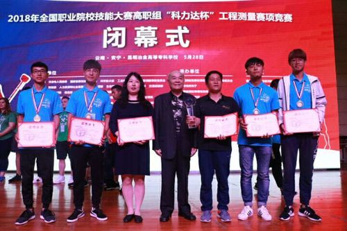 5月25日-28日,由教育部、天津市人民政府、國家發(fā)展和改革委員會(huì)、科學(xué)技術(shù)部、工業(yè)和信息化部等35個(gè)部門共同主辦的2018年全國職業(yè)院校技能大賽高職組“科力達(dá)杯”工程測(cè)量賽項(xiàng)在昆明冶金高等?茖W(xué)校安寧校區(qū)隆重舉行。山東城市建設(shè)職業(yè)學(xué)院代表隊(duì)經(jīng)過兩天的努力拼搏,取得“二等水準(zhǔn)測(cè)量”、“1:500數(shù)字測(cè)圖”兩個(gè)分賽項(xiàng)的單項(xiàng)第一,以總分第一的成績(jī)奪得一等獎(jiǎng)。教師徐洪峰、范麗獲“優(yōu)秀指導(dǎo)教師”稱號(hào)。