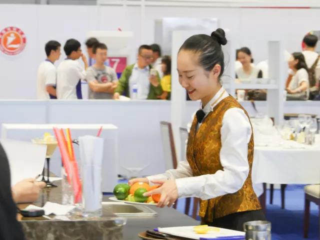 餐廳服務(wù)(西餐)項(xiàng)目選手王子璇在比賽中