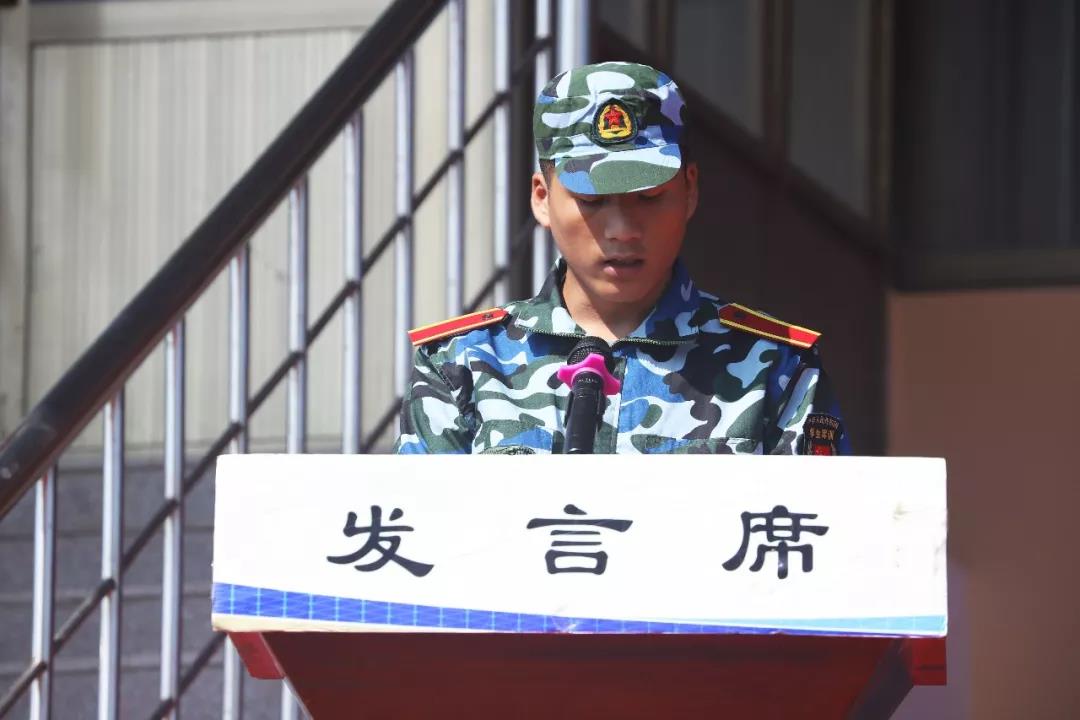 2018級(jí)新生代表高哲發(fā)言,他向全體新生發(fā)出倡議,在軍訓(xùn)期間端正態(tài)度,嚴(yán)于律己,磨練意志,鍛煉自我,共同努力圓滿交上軍訓(xùn)這份答卷。