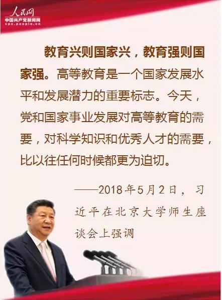 教育興則國家興,教育強則國家強。高等教育是一個國家發(fā)展水平和發(fā)展?jié)摿Φ闹匾獦酥尽=裉,黨和國家事業(yè)發(fā)展對高等教育的需要,對科學(xué)知識和優(yōu)秀人才的需要,比以往任何時候都更為迫切。我在黨的十九大報告中提出要“加快一流大學(xué)和一流學(xué)科建設(shè),實現(xiàn)高等教育內(nèi)涵式發(fā)展”。當前,我國高等教育辦學(xué)規(guī)模和年畢業(yè)人數(shù)已居世界首位,但規(guī)模擴張并不意味著質(zhì)量和效益增長,走內(nèi)涵式發(fā)展道路是我國高等教育發(fā)展的必由之路。
