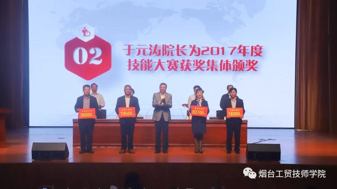 會(huì)議首先由學(xué)院黨委副書(shū)記李翠祝宣讀了《關(guān)于對(duì)2017年度技能大賽獲獎(jiǎng)集體和個(gè)人進(jìn)行獎(jiǎng)勵(lì)的通報(bào)》。學(xué)院院長(zhǎng)于元濤為獲獎(jiǎng)集體進(jìn)行頒獎(jiǎng)。
