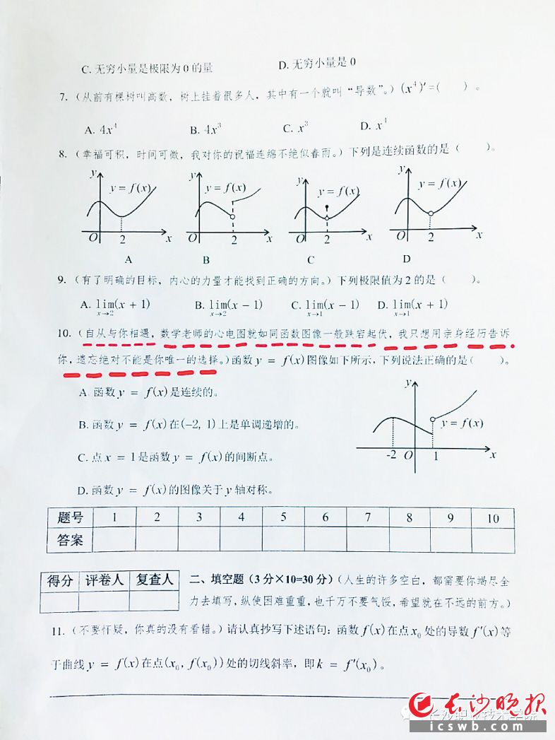 一套試卷或許足以看出她對學生的愛,盡管如此,學生們也沒有放松“警惕”,有學長“警告”說:“你們還是認真看題吧,這可是一個難對付的數(shù)學老師!