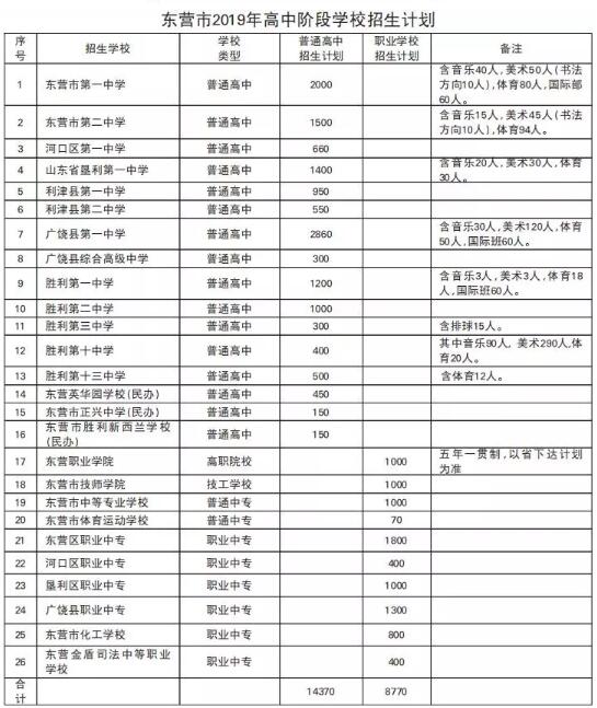 從招生人數來看,今年普通高中和職業(yè)學校的招生計劃總數均比去年略增。其中,墾利一中、河口一中、市勝利十中、市勝利十三中較去年略增,利津一中、利津二中招生計劃較去年略減,其他學校均與去年持平。另外,招收特長生的學校比去年減少。