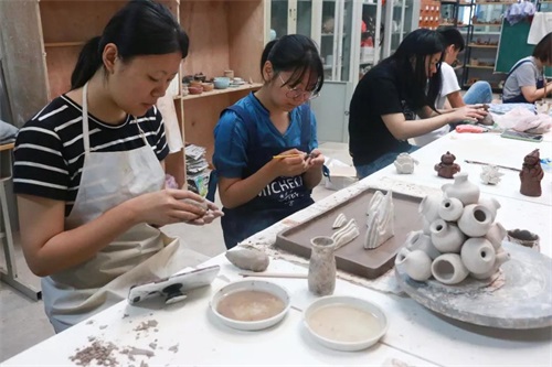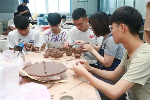 (室內(nèi)設(shè)計專業(yè)的學(xué)子正沉醉于陶藝制作的過程中)