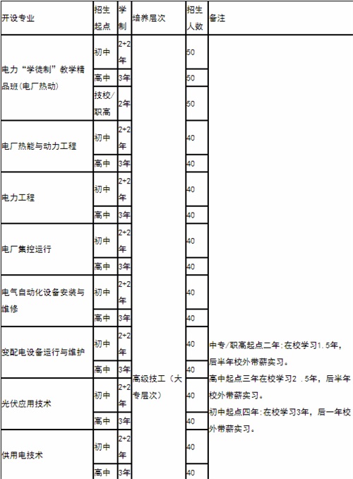 培養(yǎng)具有從事發(fā)電廠變電站電氣設(shè)備運(yùn)行與檢修等工作能力的應(yīng)用型中等專業(yè)技術(shù)人才。
