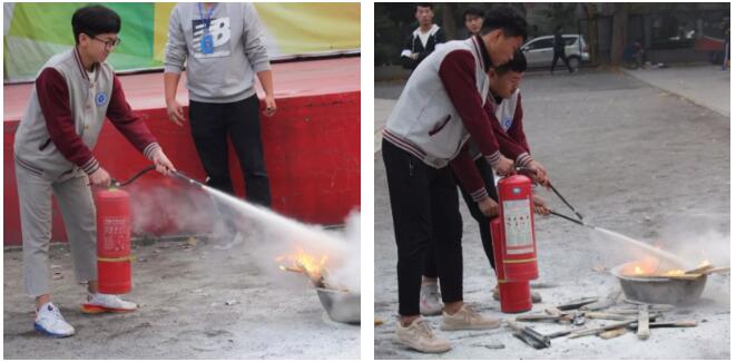 最后,學(xué)生處張展維副處長給全體師生詳細(xì)講解了滅火器的使用方法,并現(xiàn)場進(jìn)行了演示,同時邀請了部分教師和學(xué)生上臺學(xué)習(xí)使用滅火器滅火的過程。
