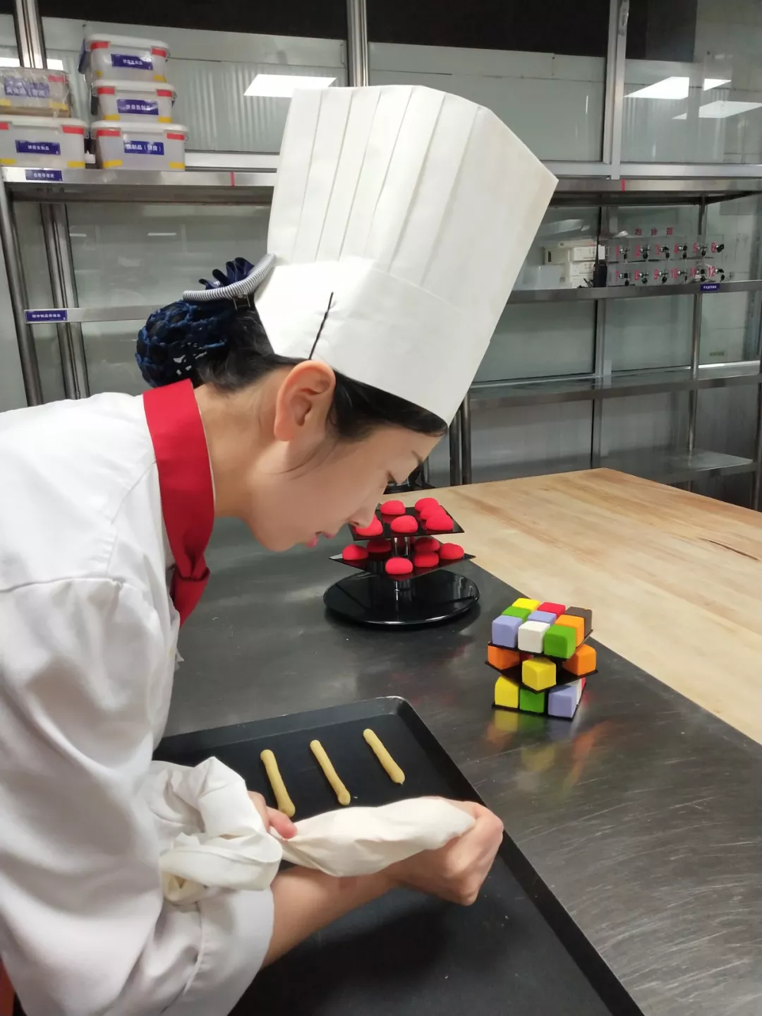 就這樣,經(jīng)過日復(fù)一日的努力,我在2010年晉升為自助餐西點廚師長。然而只有20歲出頭的我,遇到了各種意想不到的困難,我一度束手無策。部門總監(jiān)告訴我,要想得到大家的信賴和尊重,必須要有過硬的業(yè)務(wù)技能和擔(dān)當。于是我在工作中苦鉆業(yè)務(wù),做事以身作則,做人知禮明禮,視員工為家人。我努力讓自己成為曾是員工時自己心中期望的廚師長的樣子,學(xué)習(xí)著酒店優(yōu)秀管理人員的管理方法。功夫不負有心人,我所帶領(lǐng)的班組人員穩(wěn)定,團隊氛圍積極向上,我終于可以勝任廚師長的崗位了。