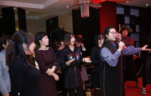 年會的聯(lián)歡部分就在最后全體演唱的《相親相愛》歌聲中結(jié)束,之后大家一起進(jìn)行了晚宴活動。