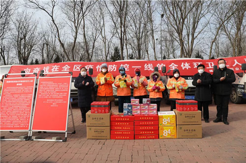 山東省十三屆人大代表、省人大教科文衛(wèi)委員會(huì)委員、德州交通職業(yè)中等專業(yè)學(xué)校校長(zhǎng)魏榮慶前往現(xiàn)場(chǎng)發(fā)放物資,并向疫情防控一線工作人員表示慰問。一線工作部門領(lǐng)導(dǎo)和員工向魏校長(zhǎng)和德州交專表達(dá)了感激之情。