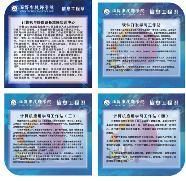 淄博市技師學(xué)院信息工程系實(shí)習(xí)實(shí)訓(xùn)條件優(yōu)越,實(shí)訓(xùn)場地占地1000余平方米,實(shí)訓(xùn)總資產(chǎn)500余萬元,現(xiàn)有信息網(wǎng)絡(luò)布線實(shí)訓(xùn)室、網(wǎng)絡(luò)系統(tǒng)管理學(xué)習(xí)工作站、計(jì)算機(jī)與終端產(chǎn)品維修實(shí)訓(xùn)中心、物聯(lián)網(wǎng)學(xué)習(xí)工作站等十幾個(gè)一體化學(xué)習(xí)場地,與二十多家企業(yè)建立長期穩(wěn)定的校企合作關(guān)系。