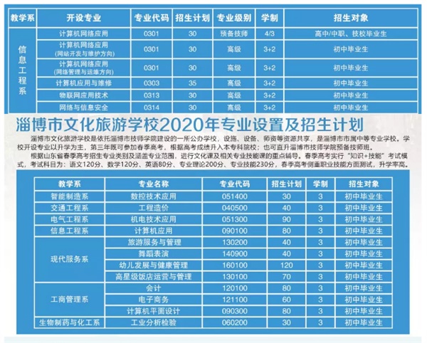 淄博市文化旅游學(xué)校是依托淄博市技師學(xué)院建設(shè)的市屬中等專業(yè)學(xué)校,主推春季高考,根據(jù)高考成績升入本?圃盒#部芍鄙筒┦屑紟煂W(xué)院預(yù)備技師班。同時(shí)預(yù)備技師班就讀期間可同步報(bào)考山東兵器工業(yè)職工大學(xué)全日制成人大專班,畢業(yè)取得學(xué)信網(wǎng)驗(yàn)印的大專證。