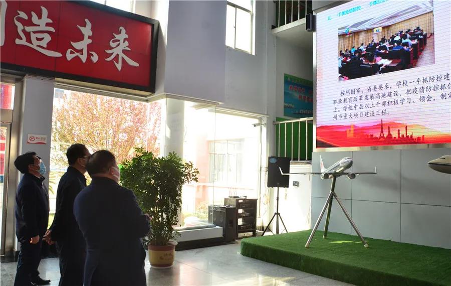 學(xué)校黨總支書記、校長魏榮慶就學(xué)校發(fā)展情況、疫情防控工作、開學(xué)準(zhǔn)備等,向于杰副省長作總體匯報,副校長劉建波介紹了學(xué)校職教高地建設(shè)工作的整體規(guī)劃和進(jìn)展情況。隨后,于杰副省長前往學(xué)校汽車實訓(xùn)基地、公共實訓(xùn)中心進(jìn)行實地調(diào)研,并聽取了副校長李玉明對我校特色專業(yè)發(fā)展情況的匯報。通過視察,于杰副省長一行對學(xué)校疫情防控工作、開學(xué)準(zhǔn)備、職教高地建設(shè)等工作表示肯定與認(rèn)可。