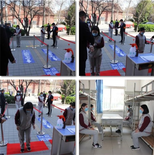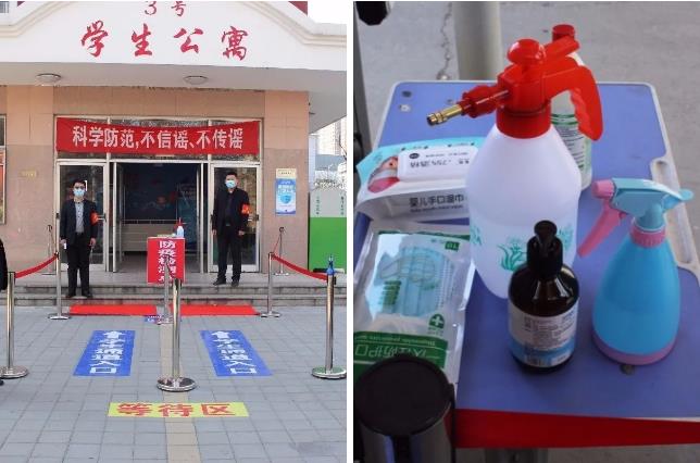 學(xué)生來(lái)到宿舍,有序排隊(duì)進(jìn)行體溫檢測(cè),鞋底消毒。進(jìn)入宿舍后,保持距離,減少交流。
