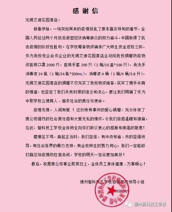 山東技校網(wǎng) >> 菁菁校園 >> 守望相助 共度時(shí)艱——德州智科技工學(xué)校感謝信