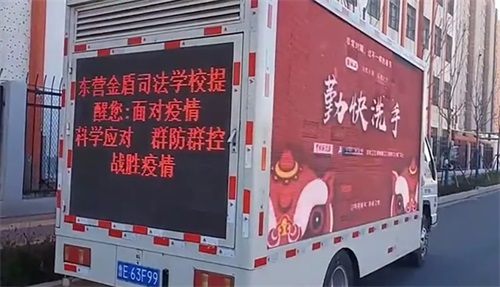學(xué)校防疫應(yīng)急隊還派出LED宣傳車赴振華商廈、百貨大樓、萬達(dá)廣場、東營區(qū)政府等地滾動播出疫情實(shí)時情況,向廣大市民普及有關(guān)科學(xué)防控知識,為東營防疫工作貢獻(xiàn)綿薄之力。