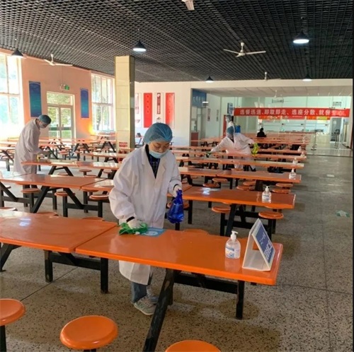 一大早,餐廳工作人員就忙活起來,打掃衛(wèi)生、消毒、準備食材等。