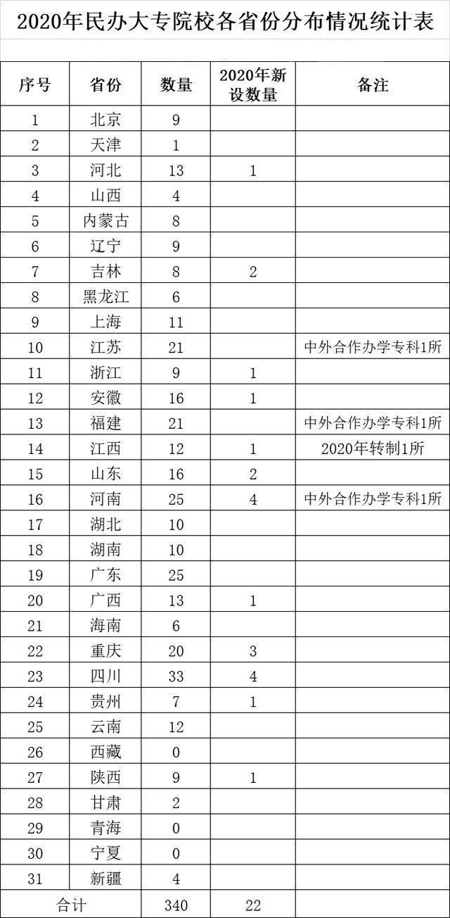 各省民辦大專職業(yè)院校統(tǒng)計表