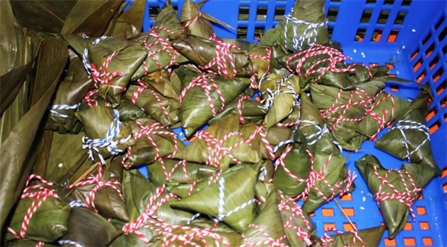 不一會兒,一片片翠綠的粽葉,一粒粒晶瑩的糯米,在大家共同的努力下,瞬間變成了各式各樣的粽子。