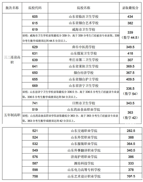 一、青島市招生學校五年制高職、三二連讀高職滿額專業(yè)錄取最低分。