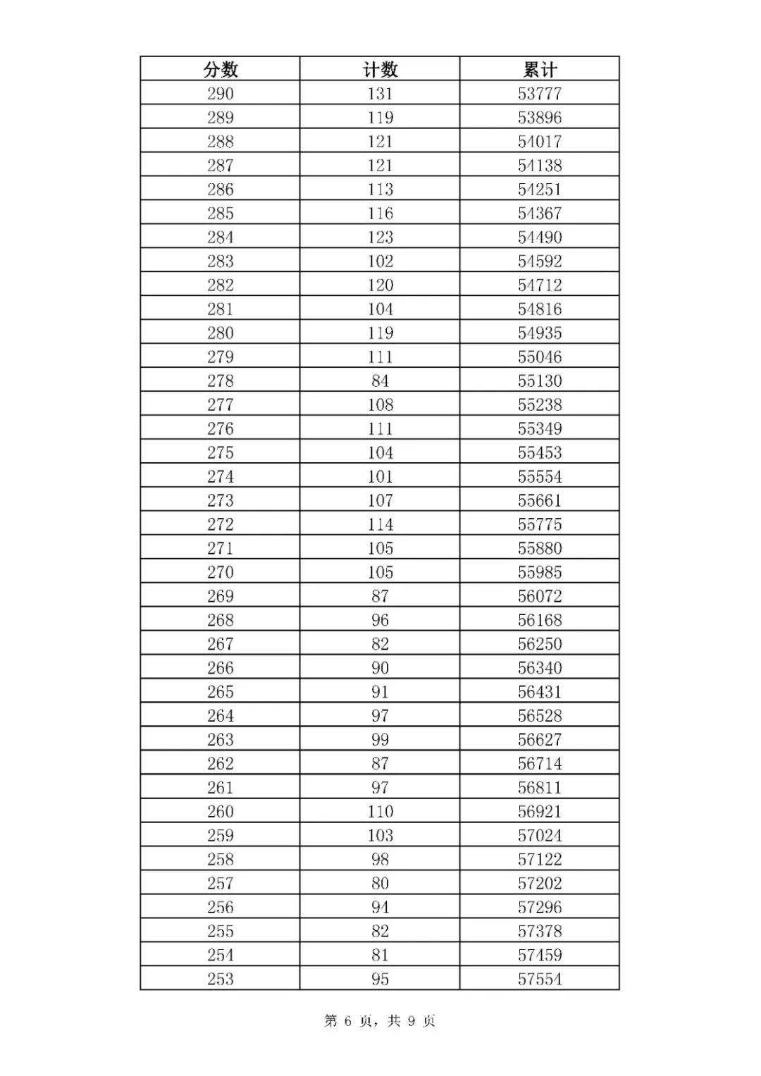 2020年山東濟南中考全市一分一段表統(tǒng)計公布(6)