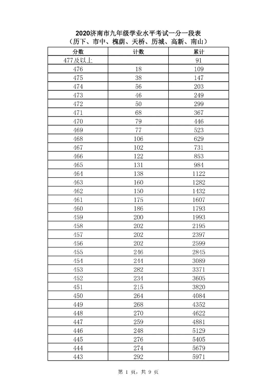 2020年山東濟(jì)南中考市內(nèi)七區(qū)一分一段表統(tǒng)計(jì)公布