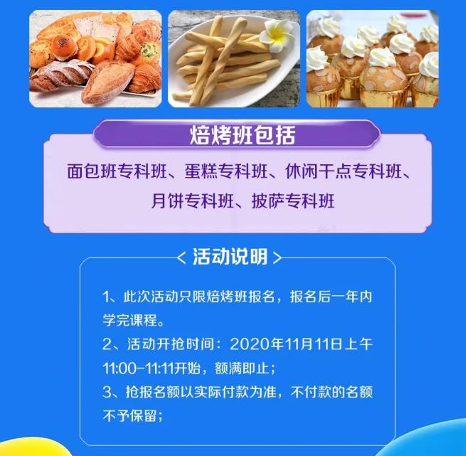 山東技校網(wǎng) >> 菁菁校園 >> 雙十一來嘍!報(bào)焙烤班,煙臺(tái)波絲蒂為你補(bǔ)貼1111元!