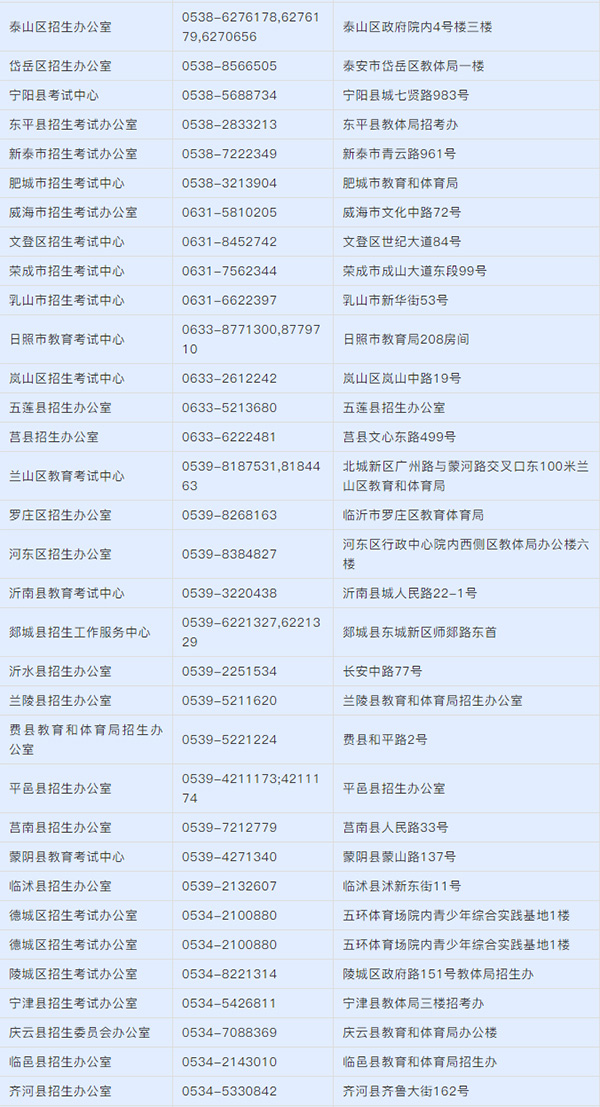 各縣(市、區(qū))招生(考試)辦公室聯(lián)系方式