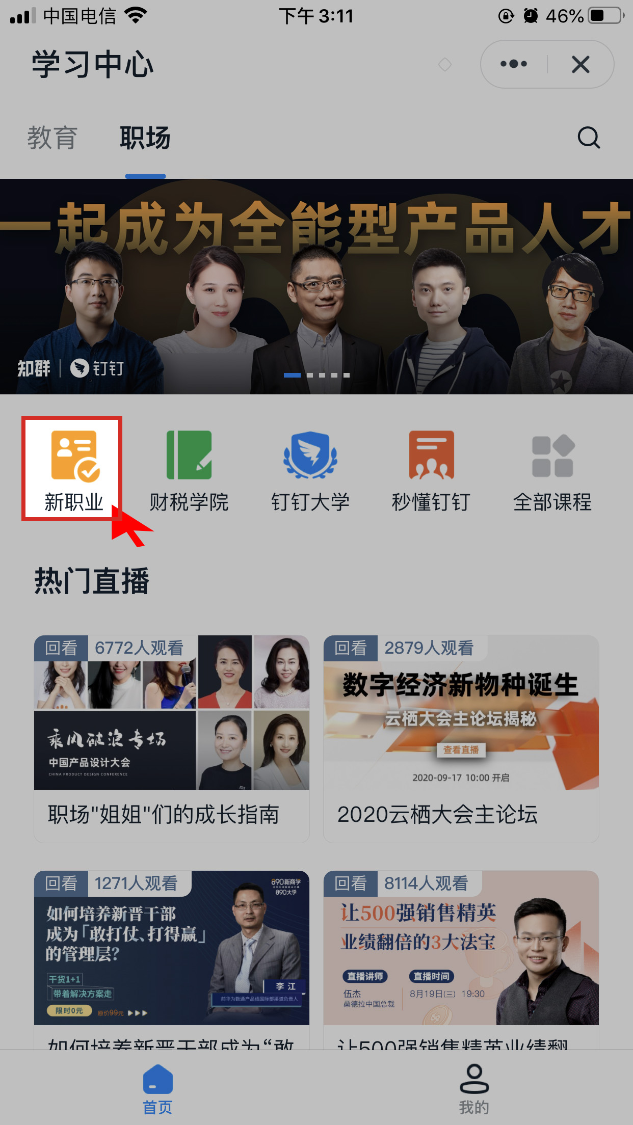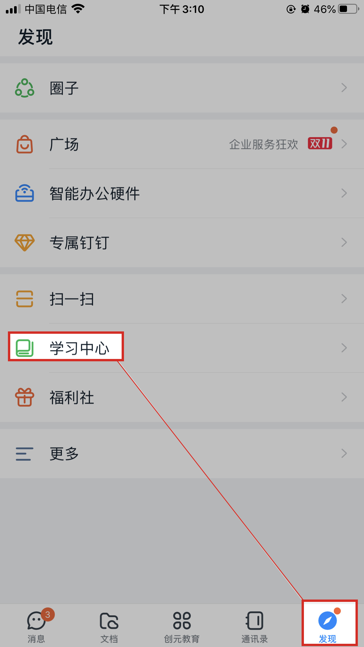 第一步:進(jìn)入釘釘“學(xué)習(xí)中心”
