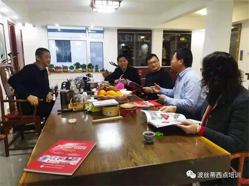 參加煙臺全市第三期新階層暨黨外知識分子培訓(xùn)班的中稅通(山東)財稅服務(wù)有限公司總經(jīng)理溫孟飛、煙臺騰達(dá)智訊文化科技有限公司總經(jīng)理孟憲臣、煙臺強盛職業(yè)培訓(xùn)學(xué)校校長鞠軍強、煙臺市生態(tài)環(huán)境局棲霞分局副科長徐建華與陳紅林校長座談。