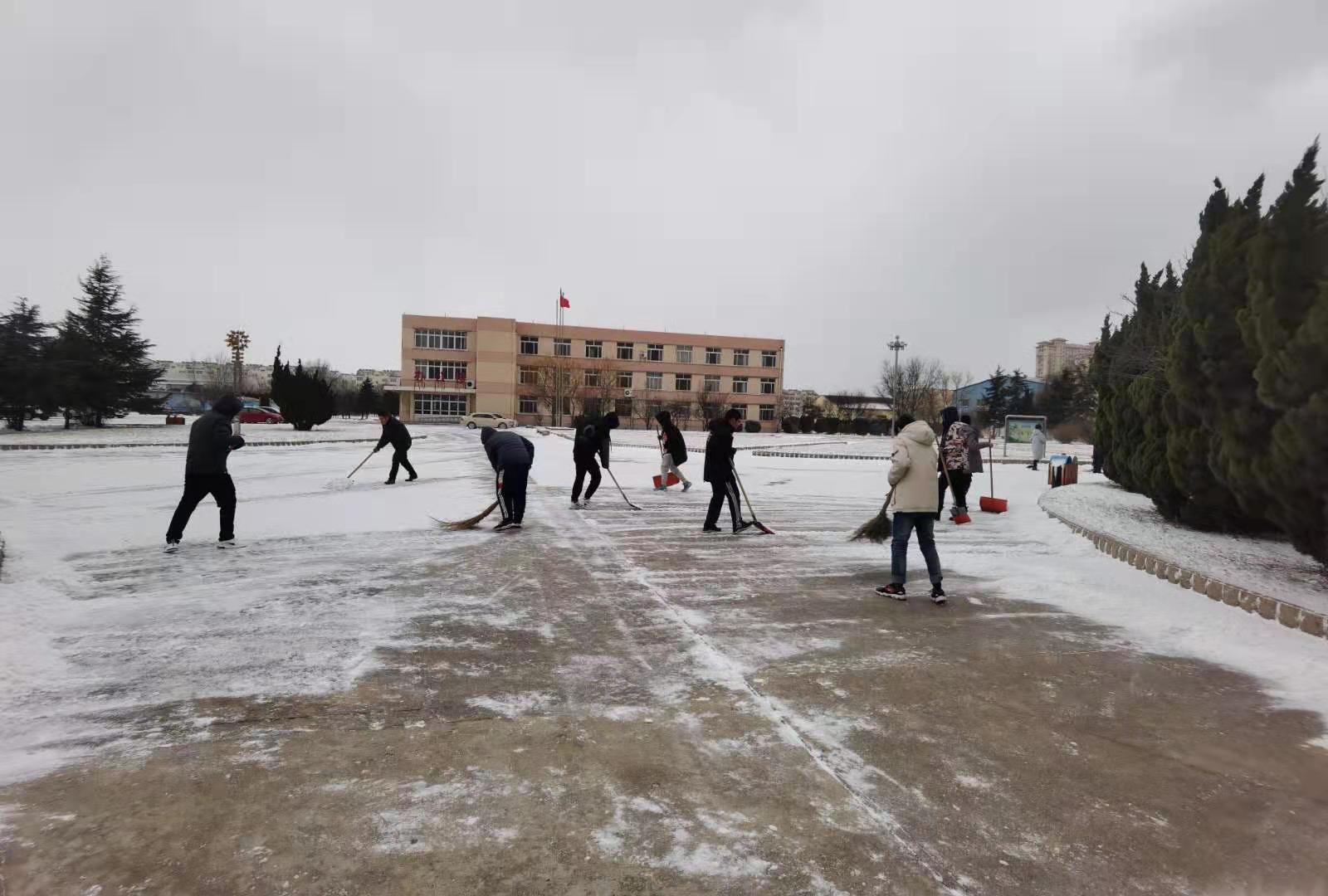 校領(lǐng)導(dǎo)身先士卒,揮舞鐵掀鏟除積雪