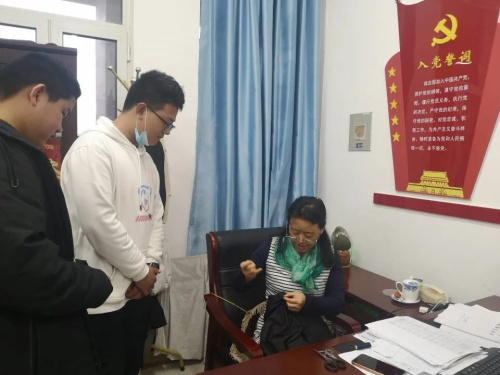 圖為醫(yī)藥系王曼青副主任為學(xué)生縫補(bǔ)衣服