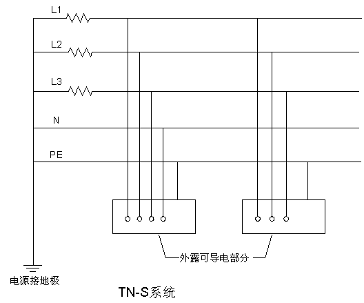 TS-S系統(tǒng)即三相五線制 N:中線 PE:保護(hù)線