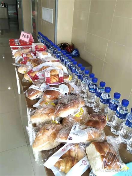波絲蒂西點(diǎn)培訓(xùn)學(xué)校陳紅林校長(zhǎng)、劉君副校長(zhǎng)為"愛心驛站"送來(lái)面包、礦泉水。