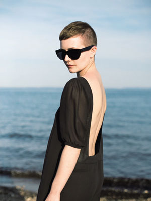 精巧的短發(fā)搭配酷勁十足的雷朋太陽鏡,在深深淺淺的米色暖意中,頗具明星氣勢。