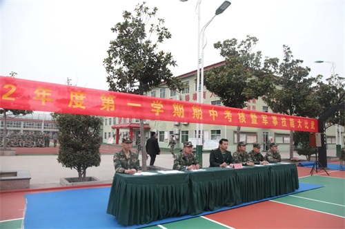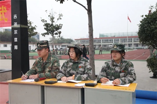 評委成員:軍政科科長管斌、教導員夏未行、軍事教研組副主任魏云剛、年級科長朱家政、程守軍、朱甲飛、白冬冬。