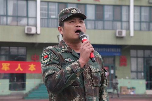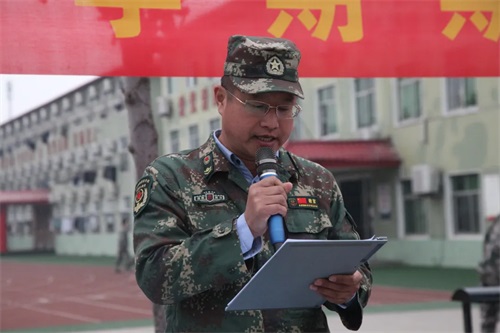 沂蒙國防教育基地軍事教研組主任陳玉堂宣布考核開始