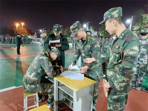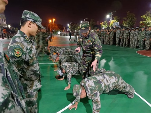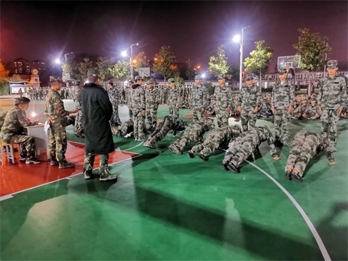考核內(nèi)容為:20級學員軍體拳或擒敵拳,21級學員單個軍人隊列動作、齊步與立定,以年級部為單位逐個排組織,由所帶排的教官指揮,全排統(tǒng)一組織實施,最后以年級部為單位組織排名。