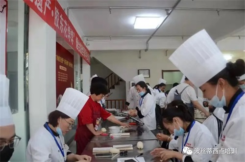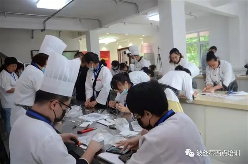 煙臺市波絲蒂中西糕點(diǎn)職業(yè)技能培訓(xùn)學(xué)校創(chuàng)立于2004年,是中西糕點(diǎn)專業(yè)培訓(xùn)機(jī)構(gòu),是煙臺市人力資源和社會保障局指定的正規(guī)技能培訓(xùn)基地;大學(xué)生及再就業(yè)人員職業(yè)技能培訓(xùn)基地;煙臺市金藍(lán)領(lǐng)高技能人才培訓(xùn)基地。西點(diǎn)課程設(shè)置全面:面包?瓢唷⒌案鈱?瓢唷⑿蓍e干點(diǎn)班、月餅?瓢唷⑴_?瓢、裱花?瓢、法式甜品?瓢唷㈨n式裱花班、休閑飲品咖啡班、健康日式面包提升班、私房創(chuàng)業(yè)綜合班、業(yè)余西點(diǎn)流行班等等。