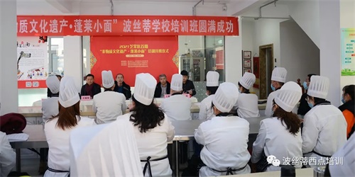 12月8日上午,在溫暖和煦的初冬時節(jié),2021芝罘區(qū)首屆“非物質(zhì)文化遺產(chǎn)·蓬萊小面”培訓(xùn)班在煙臺波絲蒂西點培訓(xùn)學(xué)校順利開班。本次培訓(xùn)是在煙臺市人力資源社會保障局的指導(dǎo)下,由煙臺市芝罘區(qū)公共就業(yè)人才服務(wù)中心主辦,煙臺市非物質(zhì)文化遺產(chǎn)保護中心、煙臺市社會組織聯(lián)合會教育科技分會、煙臺市波絲蒂中西糕點職業(yè)技能培訓(xùn)學(xué)校聯(lián)合承辦,旨在更好地傳承發(fā)揚蓬萊小面非遺文化,進一步推進國家非物質(zhì)文化遺產(chǎn)保護工作,培養(yǎng)和帶動非遺專業(yè)人才更好地提升技能、就業(yè)創(chuàng)業(yè)。