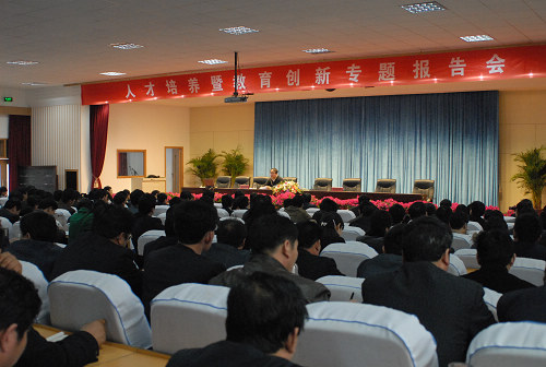 上午,田書記作了題為《提高學(xué)校管理干部素質(zhì)》的報(bào)告。他指出,作為一個(gè)教育干部,要關(guān)注形勢(shì),迎接挑戰(zhàn),增強(qiáng)政治意識(shí),樹立以人為本的教育理念,健全完善人格,保持健康心態(tài),善于團(tuán)結(jié)協(xié)作,掌握管理藝術(shù),創(chuàng)造團(tuán)結(jié)共事的領(lǐng)導(dǎo)環(huán)境,不斷提升自身素質(zhì),切實(shí)承擔(dān)起推動(dòng)教育事業(yè)又好又快發(fā)展的光榮使命。下午,田書記作了題為《創(chuàng)新教育與創(chuàng)新人才培養(yǎng)》的報(bào)告。他指出,要充分認(rèn)識(shí)21世紀(jì)是創(chuàng)新的世紀(jì),轉(zhuǎn)變傳統(tǒng)教育觀念,發(fā)展學(xué)生的創(chuàng)造個(gè)性,培養(yǎng)學(xué)生創(chuàng)新精神,認(rèn)真研究創(chuàng)新教育,努力培養(yǎng)更多創(chuàng)新型人才,為建設(shè)創(chuàng)新型國家做出更大貢獻(xiàn)。田書記的報(bào)告內(nèi)涵豐富、見解深刻、妙趣橫生,使大家深受啟發(fā)。