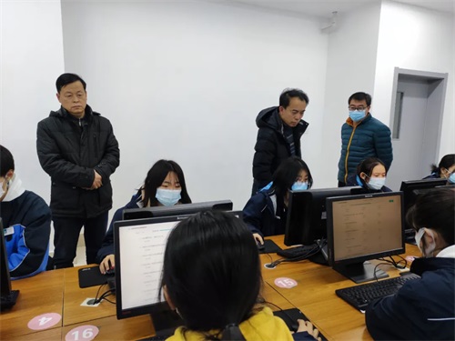 為做好本次測試工作,濰坊商業(yè)學校成立學生心理發(fā)展狀況調研工作領導小組。根據上級下發(fā)的樣本校組織工作要求,制定了我校調研工作實施方案和防疫、停電斷網等應急預案,認真組織準備工作。信息技術系副主任張建彬提前安裝調研軟件,落實好各機房的布置工作。校醫(yī)戴志娟老師為參測人員測溫,做好防疫工作安排,F場調研員指導參測師生認真填寫基本信息,并由趙東武老師全程監(jiān)督測試過程。測試過程中,學校黨委書記、校長孫中升,工會主席范守才,學生處處長劉傳彬指導調研工作。