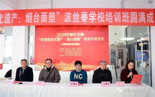2021年12月13日上午,2021芝罘區(qū)首屆“非物質文化遺產(chǎn)·煙臺面塑”培訓班在波絲蒂西點培訓學校順利開班。本次培訓旨在更好地傳承發(fā)揚“煙臺面塑”這項非遺文化,推進國家非物質文化遺產(chǎn)保護工作,培養(yǎng)一批德才兼?zhèn)涞暮细駛鞒腥,充分發(fā)揮膠東文化資源豐富和傳統(tǒng)文化底蘊深厚的優(yōu)勢,培養(yǎng)和帶動非遺專業(yè)人才更好地提升技能、就業(yè)創(chuàng)業(yè)。 煙臺市芝罘區(qū)公共就業(yè)和人才服務中心培訓科邢海英科長(中)、煙臺面塑傳承人本次培訓老師陶永廣(左二),中飯協(xié)膠東促進委研究院秘書長王惠忠(右二),煙臺市波絲蒂西點培訓學校校長陳紅林(左一)共同出席了開班儀式。