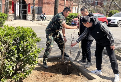 陽春三月,春季盎然,為踐行植樹綠化精神,進一步美化、綠化校園,團委組織團員代表及新生、同濟南應用技術(shù)畢業(yè)職業(yè)中等專業(yè)學校部分教職工在操場北空地參加義務植樹活動。