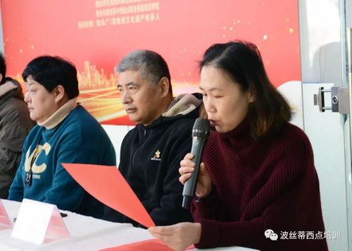 中飯協(xié)膠東促進委研究院秘書長王惠忠教授致詞:今天的煙臺面塑已是煙臺地域文化的活化石,具有深厚的文化價值、歷史價值和實用價值。當(dāng)前,國家非常重視非物質(zhì)文化遺產(chǎn)的保護與傳承,把非物質(zhì)文化遺產(chǎn)轉(zhuǎn)為課程,為大家提供免費學(xué)習(xí)的機會,希望通過大家的學(xué)習(xí)傳播,共同把煙臺面塑技藝發(fā)揚光大。