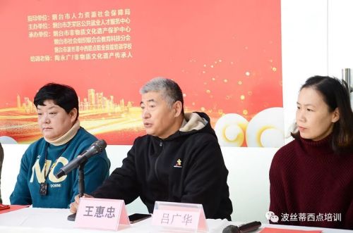 本次培訓(xùn)是由煙臺市人力資源社會保障局的指導(dǎo),煙臺市芝罘區(qū)公共就業(yè)人才服務(wù)中心主辦,煙臺市非物質(zhì)文化遺產(chǎn)保護中心、煙臺市社會組織聯(lián)合會教育科技分會、煙臺波絲蒂中西糕點職業(yè)技能培訓(xùn)學(xué)校聯(lián)合承辦。旨在為煙臺市的非遺愛好者們搭建了一個學(xué)習(xí)、交流的平臺,了解非遺,保護非遺,傳承非遺,歡迎你的加入。