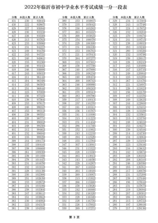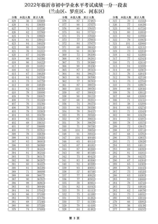 二、2022年臨沂市(蘭山區(qū)、羅莊區(qū)、河?xùn)|區(qū))中考成績一分一段表